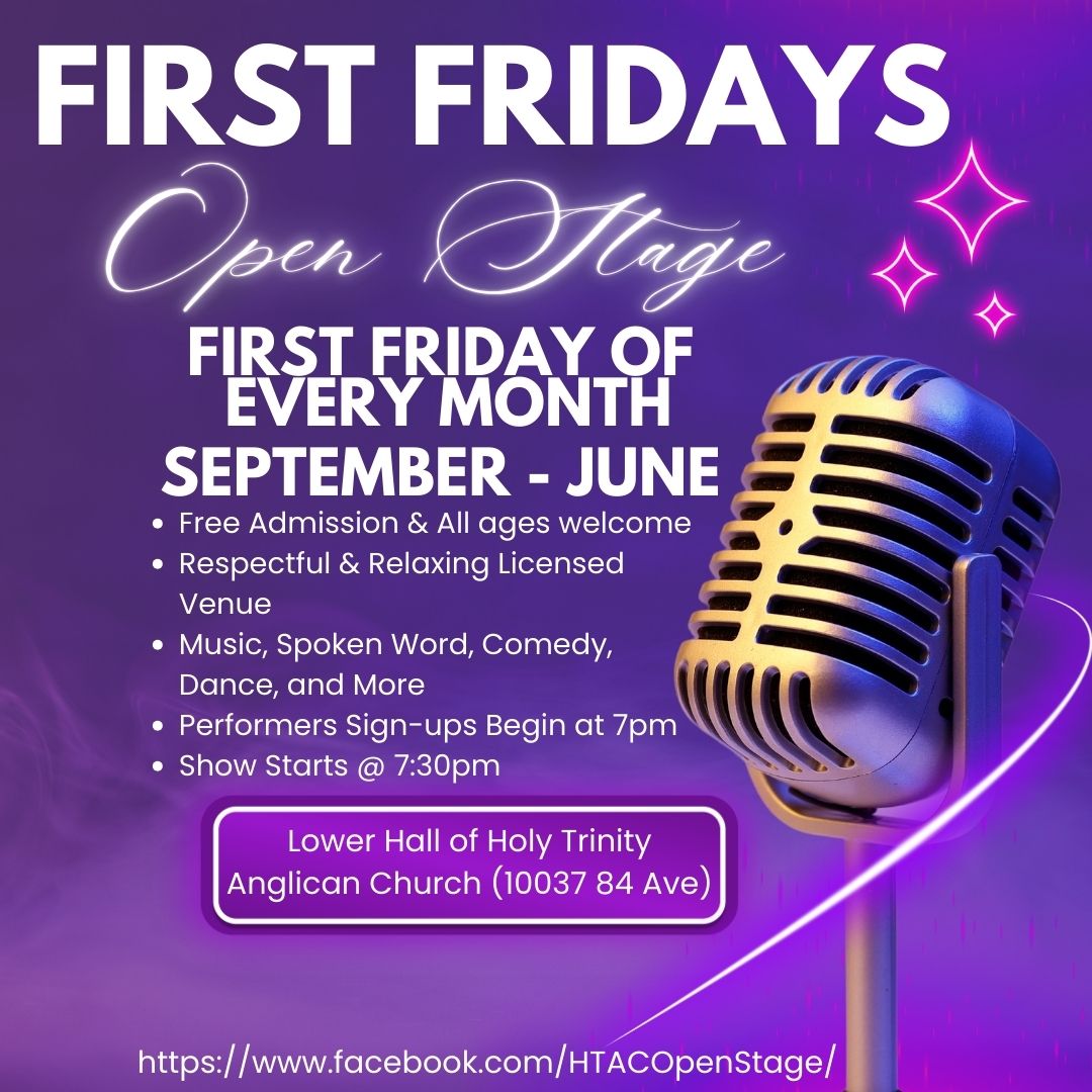 The First Fridays Open Stage offers performers at every level a relaxed and safe on-stage experience in front of an attentive audience. Musicians (all genres), poets, comedians, artists, and whatever else is out there, are all welcome. And of course audience members. Free admission. Refreshments available. Performer sign-up starts at 7:00PM.